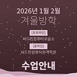 겨울방학에 해당하는 2026년 1월 2월 씨드런 컴퓨터교습소 씨드런 컴퓨터원격학원 수업 안내입니다