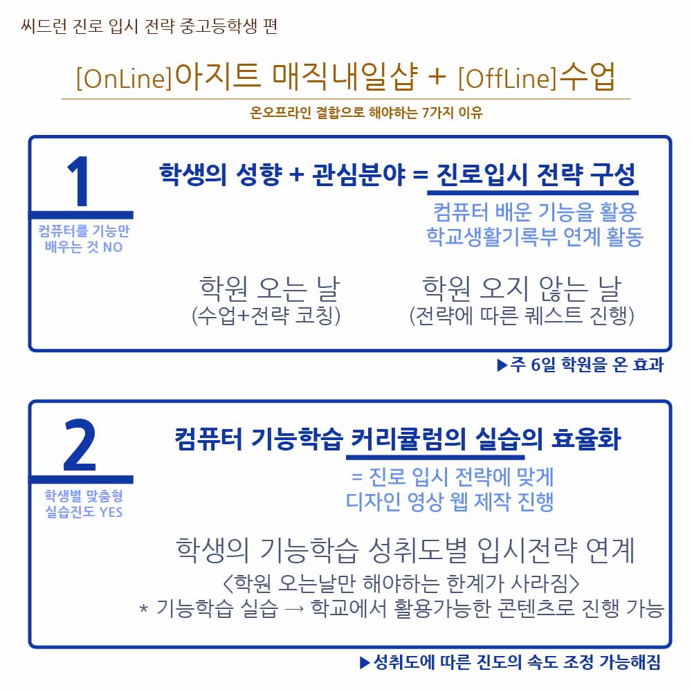 "학원 다니는 저의 목표는 확실합니다. 시간을 많이 투자할수 있습니다. 맞춤 진도로 확실한 결과를 조금 더 빨리 낼수는 없을까요? "