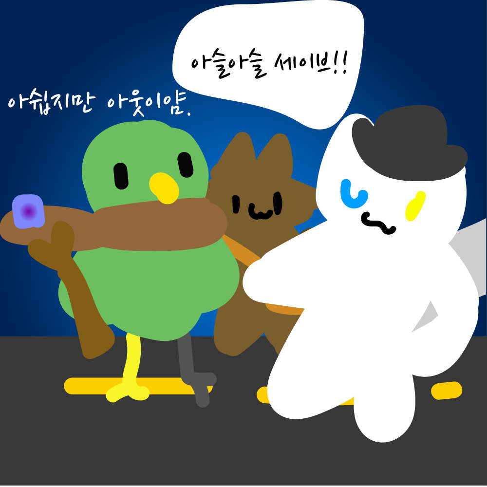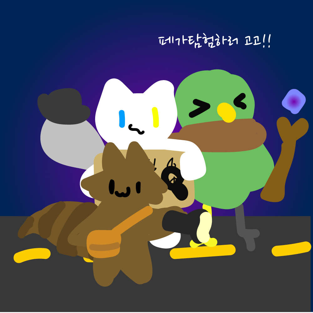 셋이서 공포채험을하러 왔네요! 냥이씨와앵무씨그리고너굴씨는 공포물을 좋아하죠.!