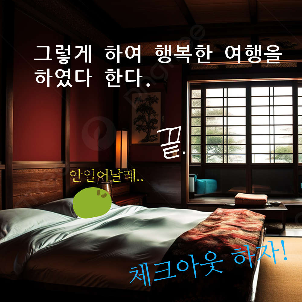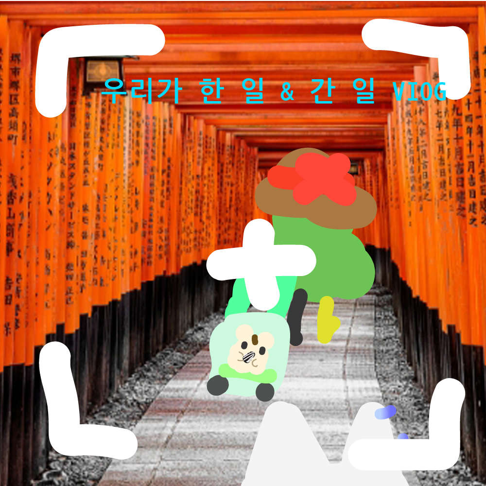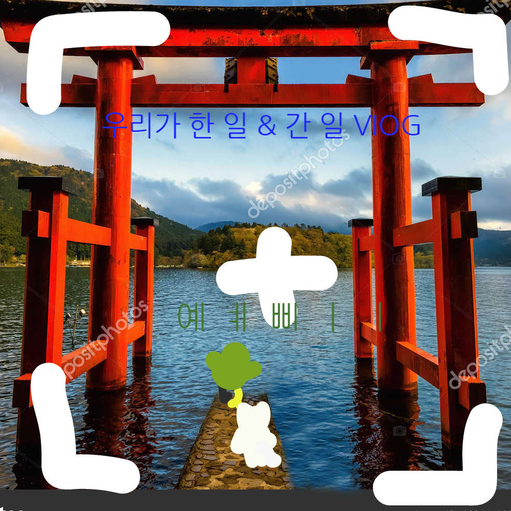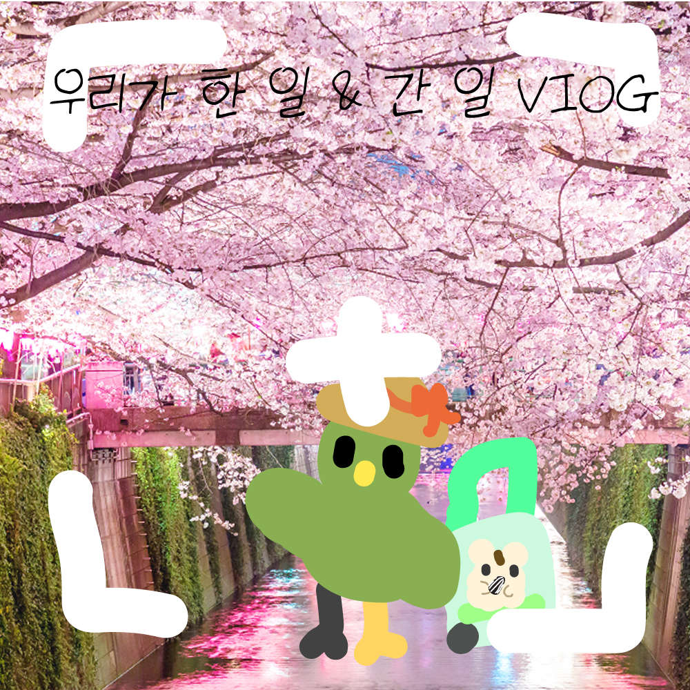 이번 여행지는 `일본` 이였죠! 일본 하면 온천 , 신사 , 벚꽃 이 생각나죠 ? 그래서 그걸 다 넣었습니다! 조랭이떡 같이 생긴 앵무가 포인트네요!